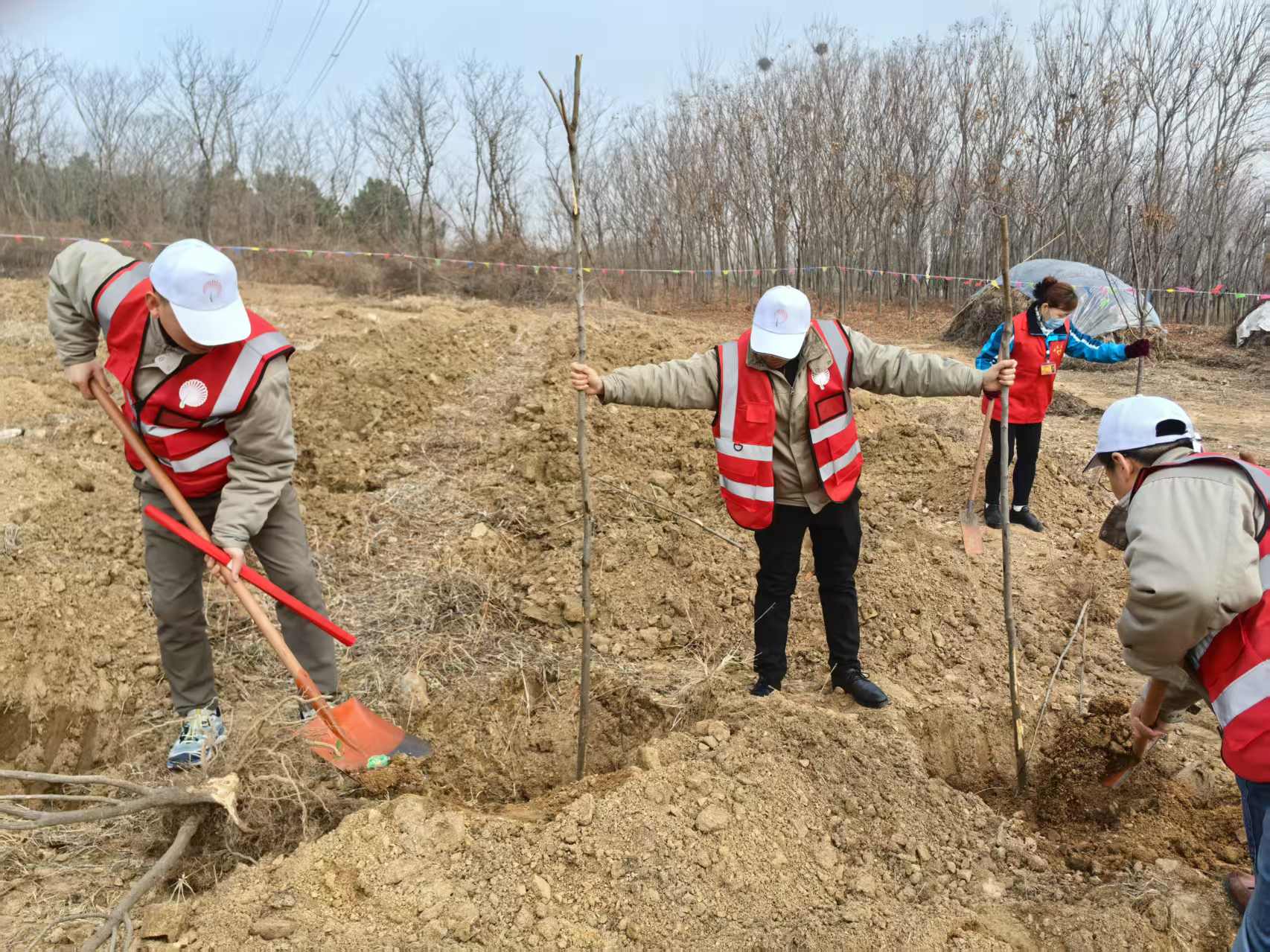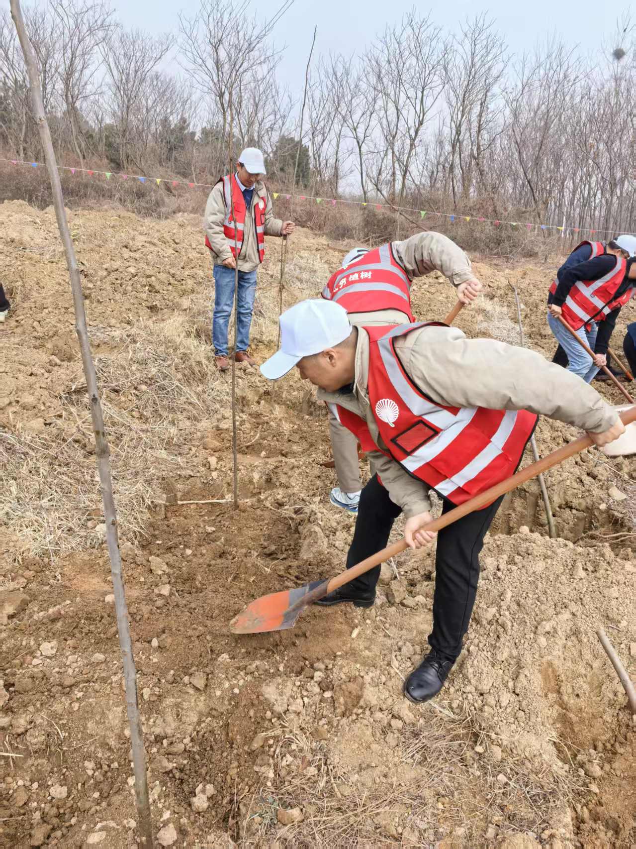 3月12日植树节当天,工会充分发挥引领作用,组织员工代表前往旺山开展义务植树活动。植树现场,大家挥锹铲土、扶苗填坑、提水浇灌,分工协作,干劲十足。一株株新栽的树苗迎风挺立,为初春的大地增添勃勃生机。