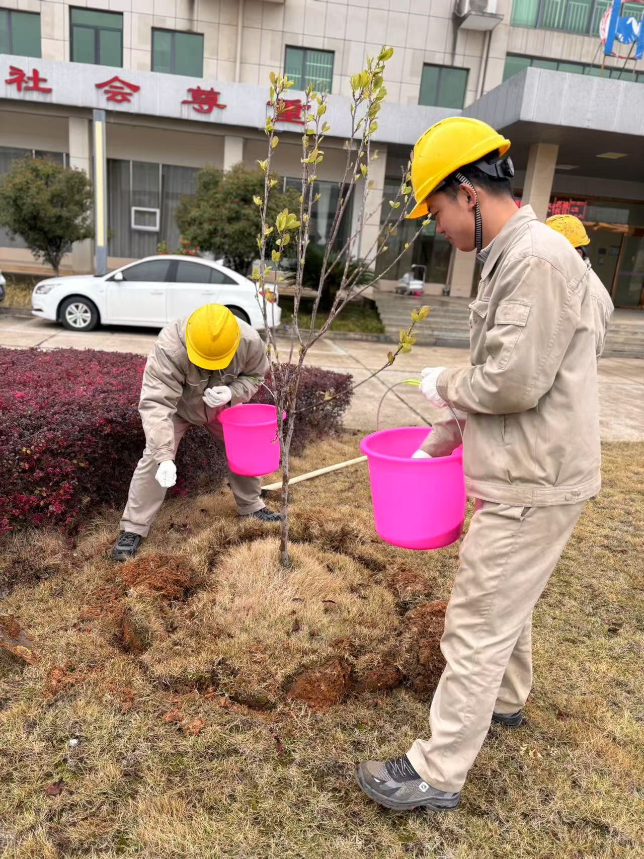 与此同时,各子公司踊跃参与,在3月份纷纷开展内部园区绿化行动,组织员工对园区绿化带、景观区及办公区域开展系统性绿化养护工作。活动现场,员工们有序开展植树造林、绿植修剪、松土浇灌等工作。经过大家的共同努力,原本单调的园区变得生机盎然,整齐的花木错落有致,不仅美化了工作环境,更让绿色理念深植每位员工心中。