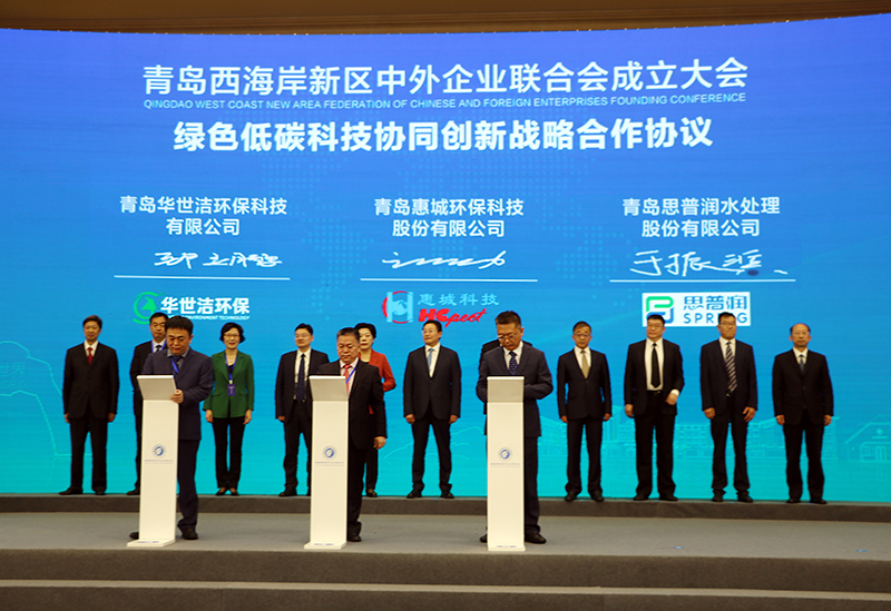 6月26日上午,青岛西海岸新区中外企业联合会成立大会召开。市委常委、青岛西海岸新区工委书记、区委书记孙永红,副区长管学锋等市、区领导以及新区相关政府部门、国有企业负责人和近200名会员企业代表参加了会议。 会上,公司董事长张新功当选为联合会第一届常务副会长,并代表会员企业宣读倡议书:要担起企业家的时代使命和社会责任,勇于创新、敢于创新,奋力趟出高质量发展、新旧动能转换的新路子,与新区发展同心同向,谱写奋斗新篇章。 随后,会议举行协议签约仪式。我公司与思普润水处理、华世洁环保联合发起绿色低碳科技协同创新战略合作,旨在抓住国家“碳达峰、碳中和”战略机遇,开展先进环保技术联合攻关,启动示范工程,壮大新区产业规模,推动绿色产业“生链、创链、补链、强链”。 会议最后,孙永红书记发表讲话,指出新区中外企业联合会的成立,将为中外企业搭建交流发展、产业促进的平台,促进企业间资源整合,实现共享共赢,助推新区经济社会高质量发展。 中外企业家,筑梦西海岸。2021年是建党100周年,也是奔向2035年远景目标的新起点。公司将借助联合会这一平台,与中外企业家携手,披荆斩棘、并肩前行,不断推进绿色环保产业的技术创新,以优异成绩为新区经济社会发展贡献力量![ 查看更多 ]