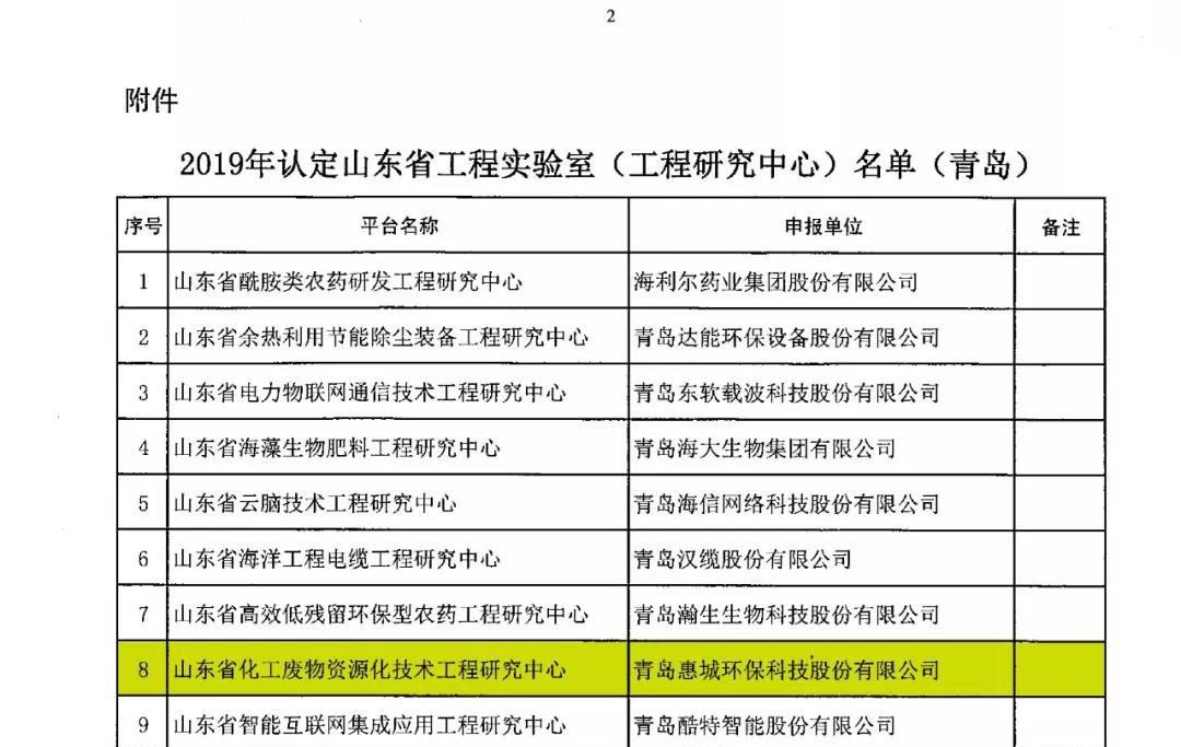 日前,根据山东省发展和改革委《关于公布2019年认定山东省工程实验室(工程研究中心)名单的通知》(鲁发改高技〔2019〕360号)发布文件,我公司申报的省级工程研究中心获批并被认定为山东省化工废物资源化技术工程研究中心。[ 查看更多 ]