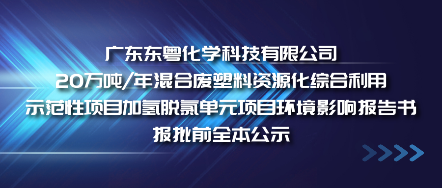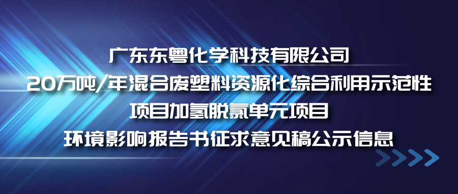 广东东粤化学科技有限公司20万吨/年混合废塑料资源化综合利用示范性项目加氢脱氯单元项目环境影响报告书征求意见稿公示信息