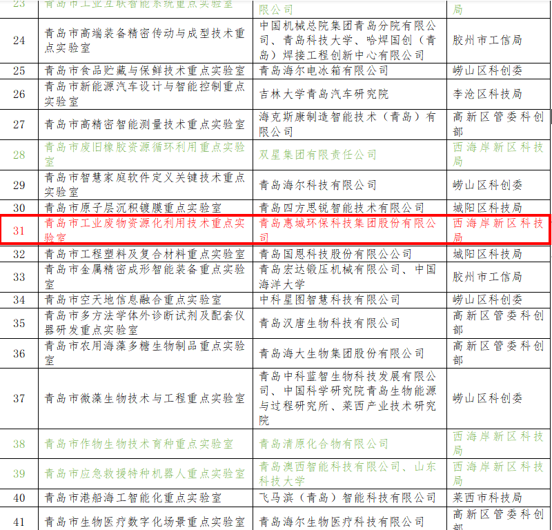 日前,青岛市科学技术局正式发布2022年度批准建设青岛市重点实验室名单,我司申报的“青岛市工业废物资源化利用技术重点实验室”位列其中。